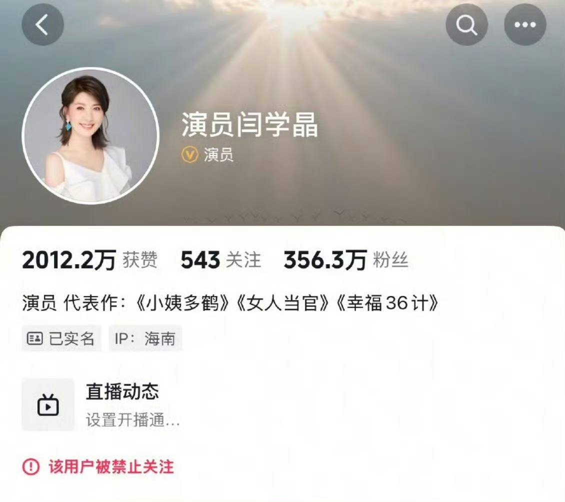 1月10日 闫学晶多个平台账号被禁止关注,此前直播“哭穷”引争议,称“儿子一部戏挣几十万不够养家”